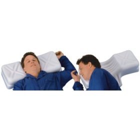 The two most important qualities for restful sleep are COMFORT and CORRECT SPINAL ALIGNMENT. Therapeutica® Sleeping Pillows are the only pillows that allow you to sleep on your back and/or side in the correct spinal alignment comfortably.Changing your sleeping position requires different support. That?s why the Therapeutica Sleeping Pillow gives you distinctly different support for back and side sleeping. It provides back and neck therapy while you sleep, relieving stress and relaxing muscles. Therapy for SNORING- The design of the Therapeutica Sleeping Pillow prevents your head from being pushed forward while sleeping on your back and this helps reduce snoring by keeping critical air passages open thus increasing air-flow while you sleep. Back Sleeping Therapy. Unique "Wedge Extension" supports your upper back. "Cervical Contour" maintains the natural curve of your neck. "Center Cavity" cradles head for optimal support and comfort.Side Sleeping Therapy "Raised Side Sections" accommodate shoulder height. "Contoured Head Rests" keep your head and neck level. "Side Cavities" provide flexible cushioning, ensuring jaw comfort, essential for TMJ sufferers.Therapeutica Pillows are the only pillows that allow you to sleep on your back and/or side in the correct sinal alignment comfortably Sizing Instructions; Have someone to assist you measure from your neck to your shoulder bone. Have them measure your LEFT shoulder Stand FACING the person who is measuring you Arms down to your sides Measure from the BASE OF YOUR NECK to EDGE OF YOUR SHOULDER. KEEP THE RULER LEVEL so the end is raised off shoulder. While holding the ruler in place with their left hand they need to measure to the bone on the shoulder (ignore muscle mass) use measurement to choose your size below: - Large 6 ¼ to 7 ¼ inches - Medium 5 ¼ to 6 ¼ inches - Petite 4 ¼ to 5 ¼ inches . All sales of these pillows are final. Not refundable, Not returnable.