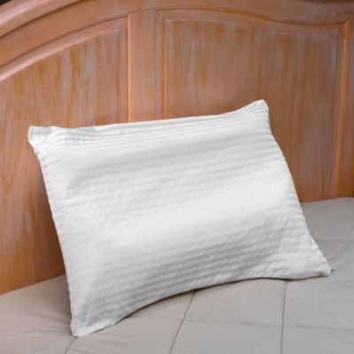 Therapeutic pillow Filled with hypoallergenic polyester fibers Polyester Machine wash/dry cover Made in USA Snoring disrupting your sleep? This therapeutic pillow was designed by a doctor to promote a deeper and more restful sleep. The pillow's unique design elevates the chin and reduces airway obstruction, which is one of the most common causes of snoring. The pillow supports and positions your head and neck whether you sleep on your side, back or stomach. If you or your sleeping partner is snoring at night, this innovative pillow is the first step to a better night's rest!