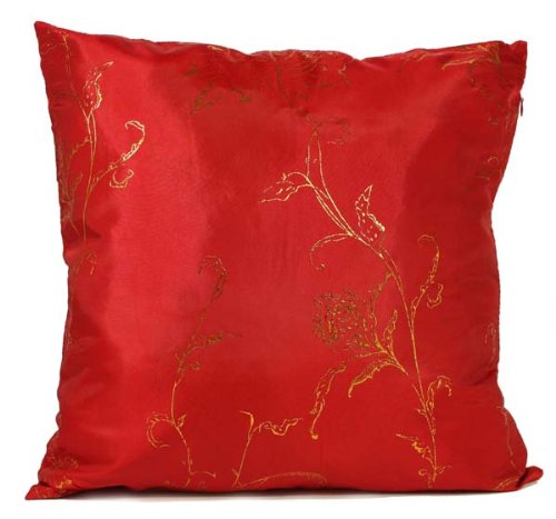 Exquisitely Silky Red with Golden Flowers Pillow Sham